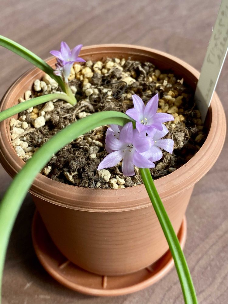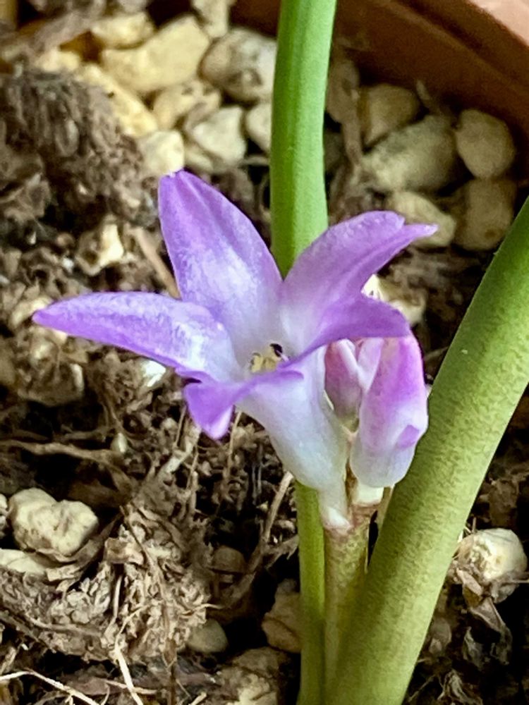 ③は、球根2個のうちの、もう一方です。土際直ぐから蕾を出すので、どんな咲き方をするのか、楽しみでした。花茎の高さは3cm程です。