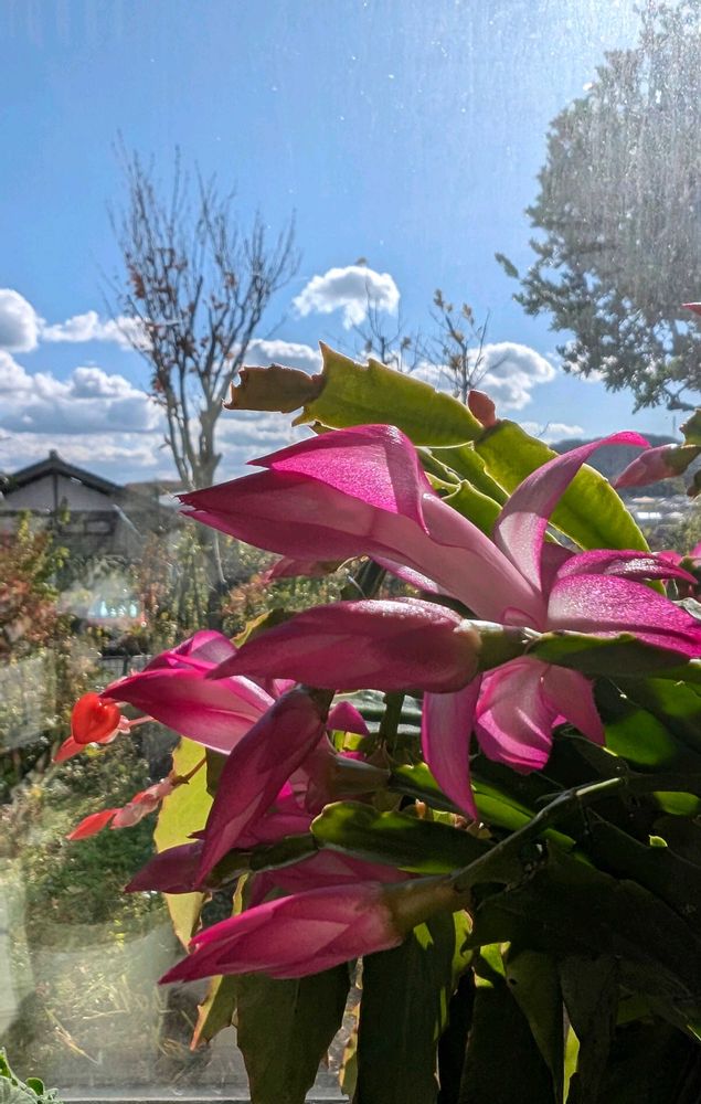 青空の下で気持ちよさそうなシャコバサボテンさんが綺麗ですね🎵💠💠💠