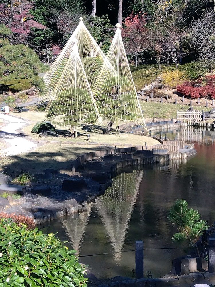 細川邸園の雪吊りは冬の風物詩なのでもう少ししたら