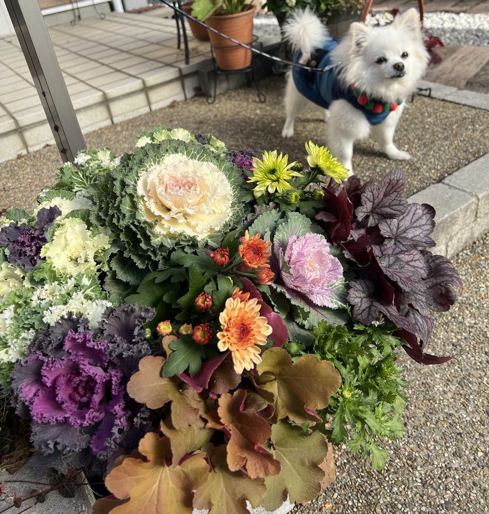 素敵な 寄せ植え^ ^可愛いすぎるワンコちゃん いいねー❣️