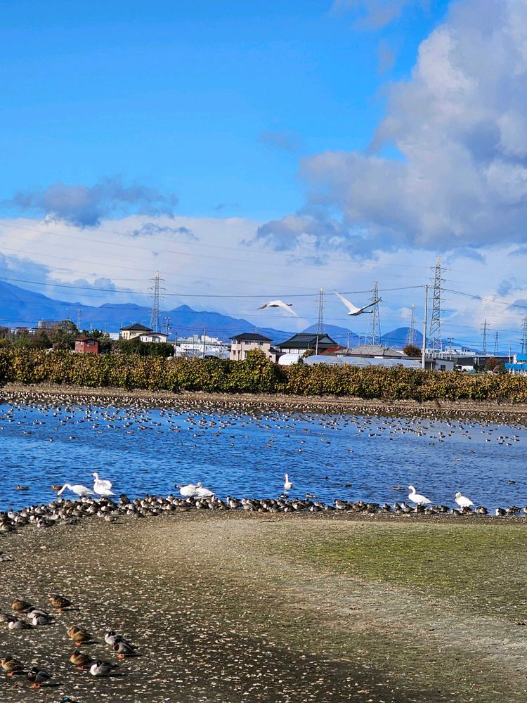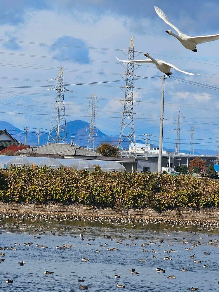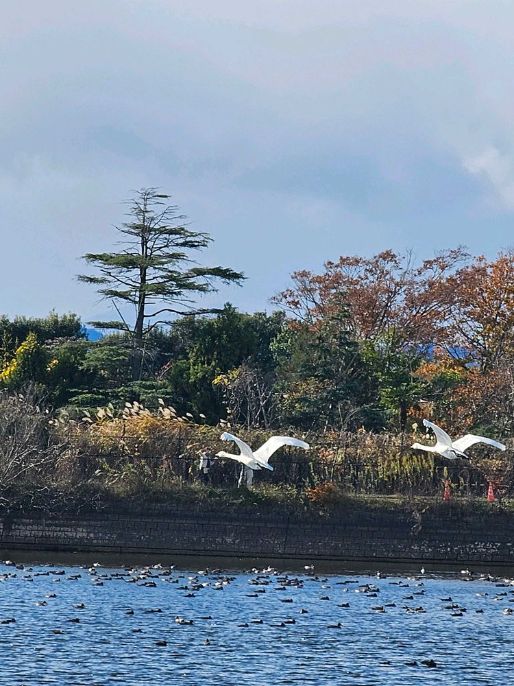 さん、毎日白鳥が来るのを待ってます、声がしてから外に出ると、もういない、今居る、楢葉町では、ナナちゃんララちゃんと広報誌に、載って居ます、ぜひ会いたいですね😄
