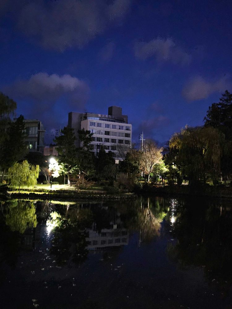 暗くても、水面に映ってキラキラしています