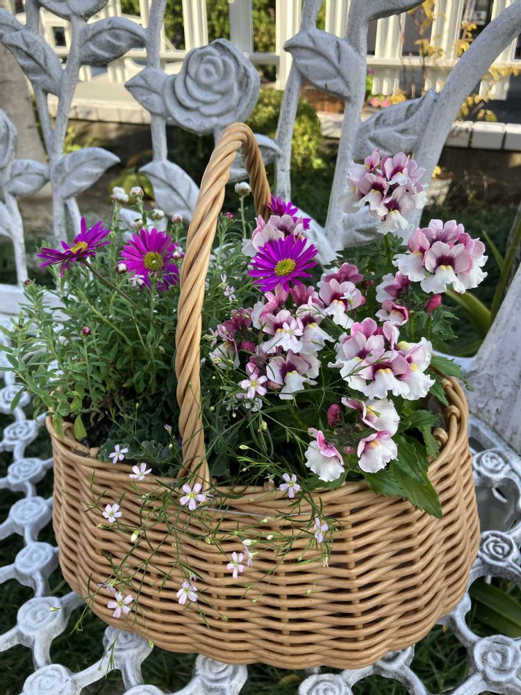 カゴの寄せ植え 可愛い色 優しい感じで@たけちゃんさんの雰囲気なのかなーと勝手に想像😅