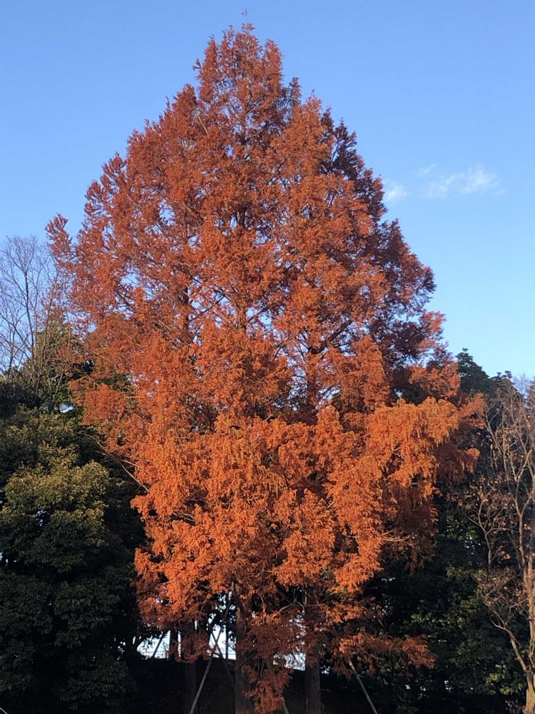 息子が卒業した小学校のメタセコイア、先週末に紅葉のピークを迎えたようです。