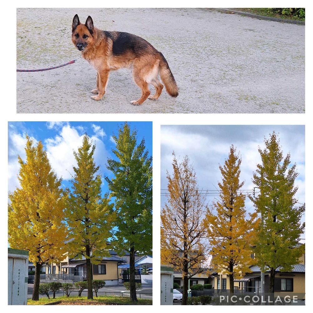 イチョウ、並んでる位置で紅葉が違うんやね☝️😉