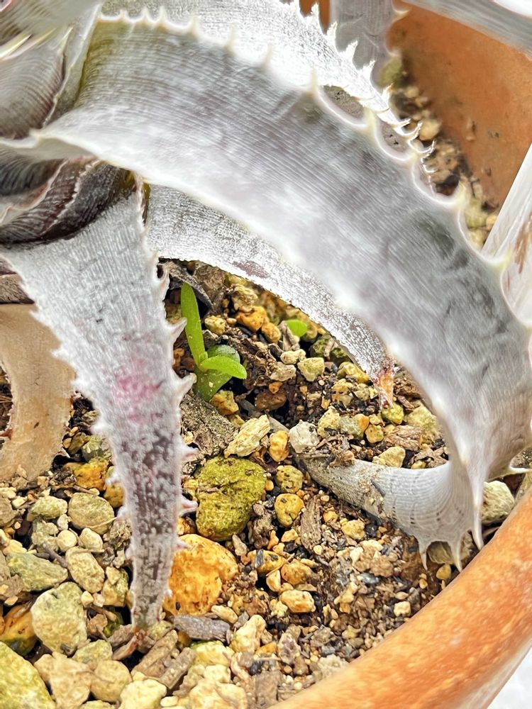 先月お迎えのディッキアの根元にみどり🌱が見える