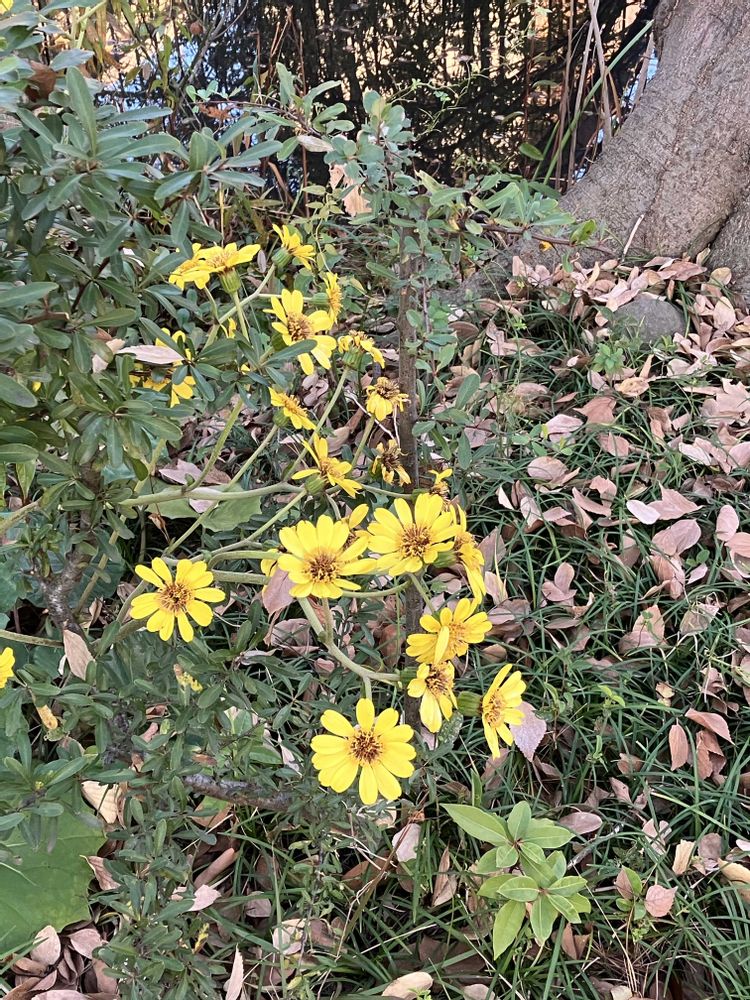 ハゼノキ ウルシ科 秋に美しく紅葉 まだ小さな木です 触るとかぶれる事もあり 道の反対側にハゼノキの幼木 マンリョウ ツワブキと植っている