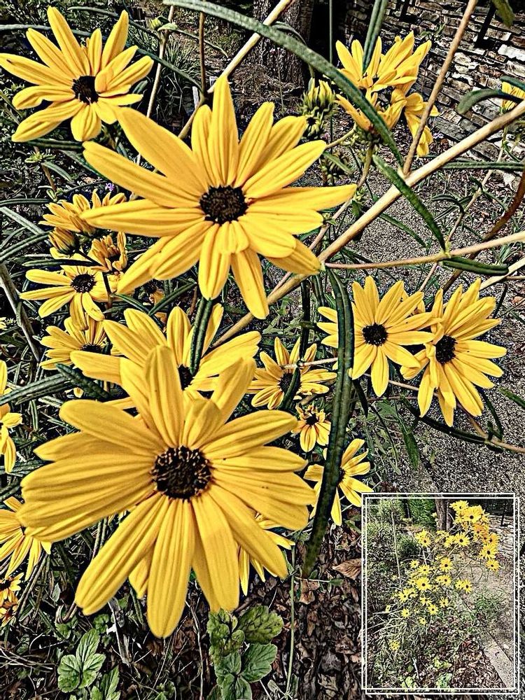 ヤナギバヒマワリ(柳葉向日葵),/その中に沢山の細葉観るや、逆ピラミッドの黄金色風情の中/の投稿画像
