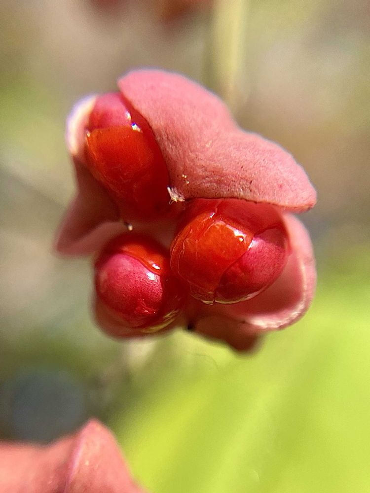 秋が短く、冬が一気にやって来て、植物達は焦ってしまいますよね。なので、アレもコレも実を付けて、飛んで行ったり、小鳥達が運んで行ったりで、見つけられなかったんでしょうね。マユミも早く食べてもらわないと、子孫繁栄出来ないし…