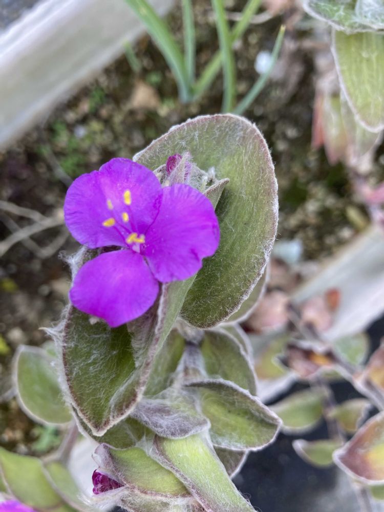 栗 かのこさんの紫色の花,多肉質の葉っぱ,朝散歩の投稿画像