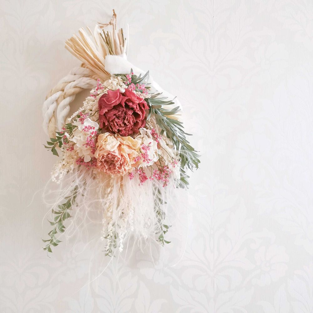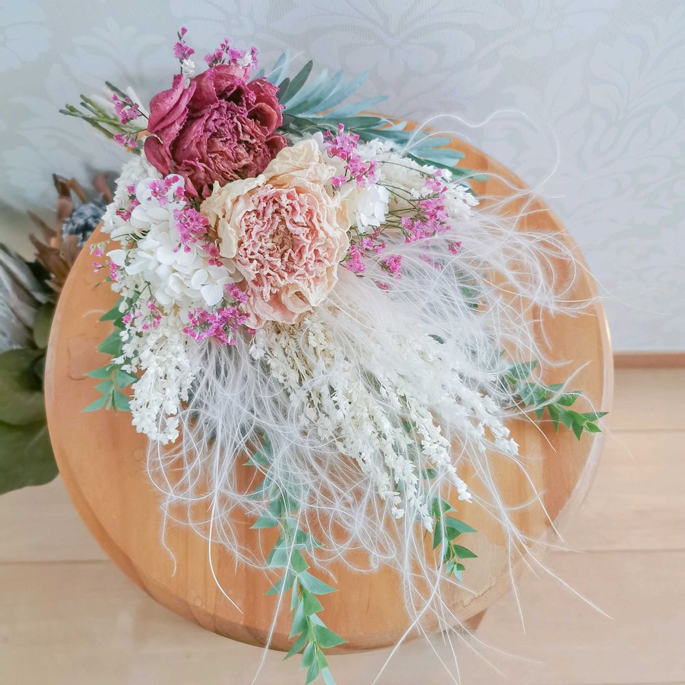 美しいフェザーグラスに出会えたので、大好きな芍薬ドライフラワーと合わせてみました