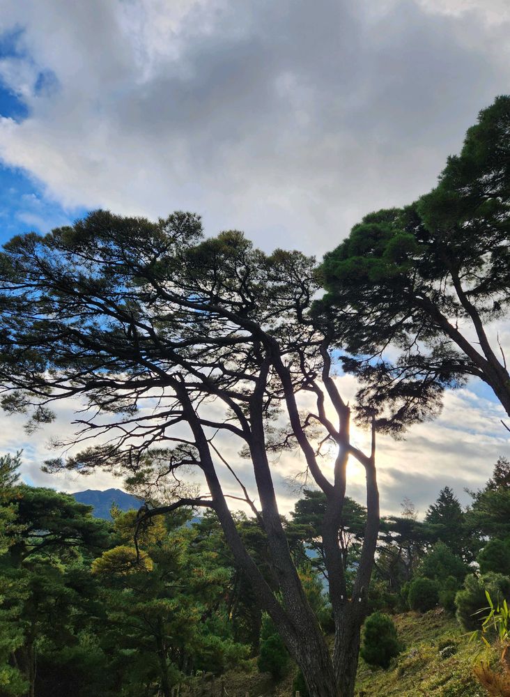 幹が根元から数本伸びて、よく見る松とは樹形が違う。