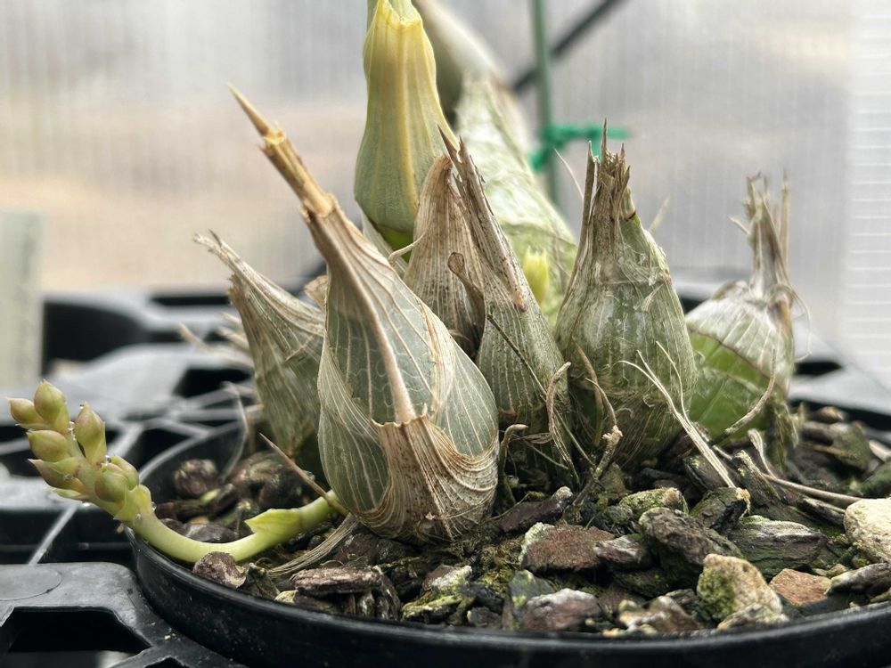 落葉とともにいくつか花芽が上がってきました🌸🌸🌸 みなさんの育て方をヒントにしたのが良かったようで、今年は花芽が上がる品種が多いようです☺️🙌