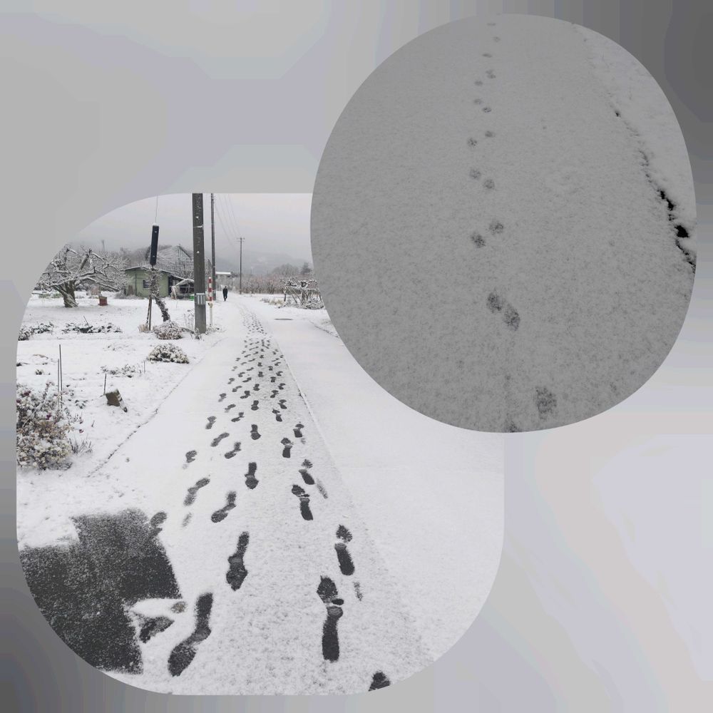 雪❄の上の足跡🐾は、ネコ🐈⬛かタヌキ🦝と思います(笑)
