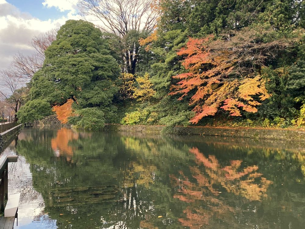 ここは金沢城公園の1番外側にある大手堀になります。お堀の横に歩道があって春はサクラ🌸秋は紅葉🍁が楽しめます😌