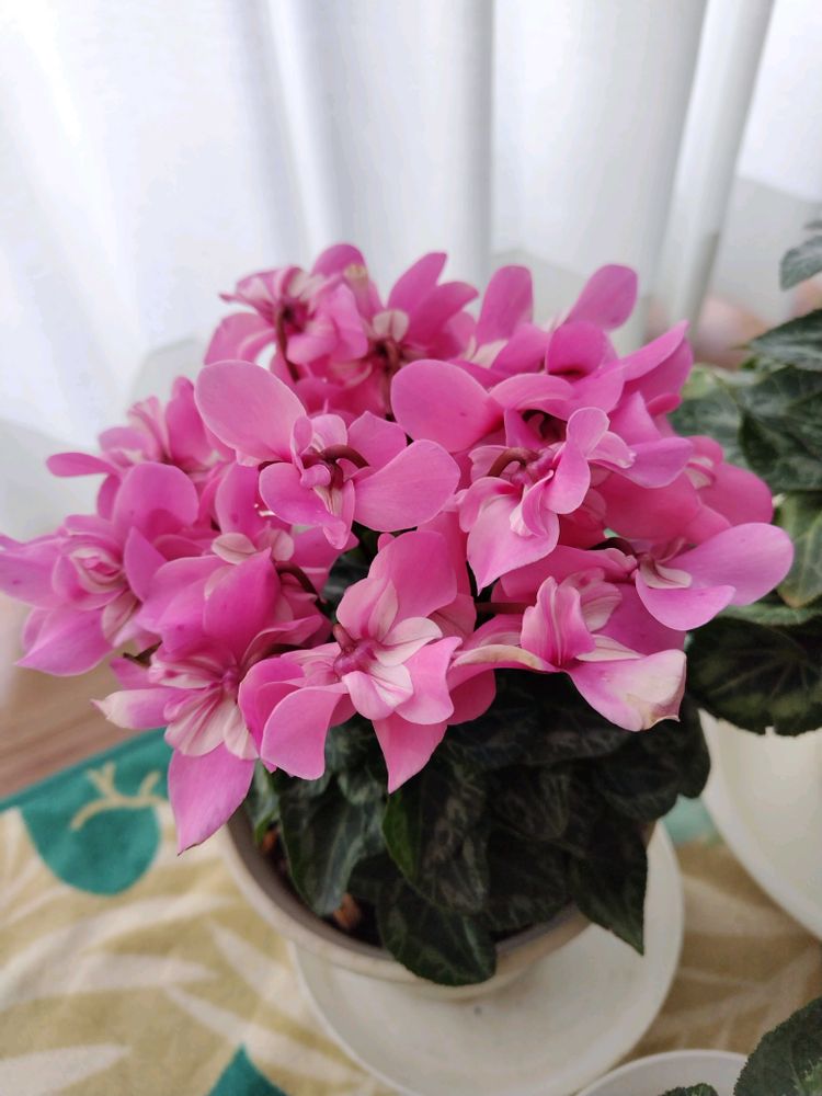 今、人気の種類ですし、お店から買って来たばかりかと思いました。上手に育てられて幸せなシクラメンですね😊