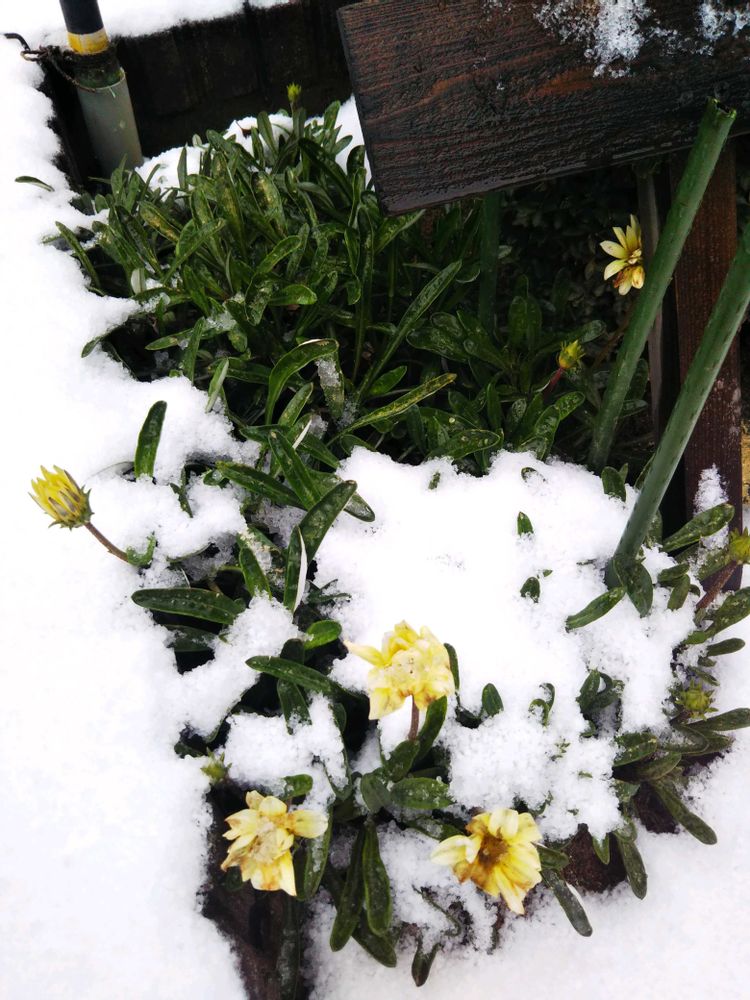 <地道投稿>おはようございます⛄️降雪1センチ🥶駐車場も1度の朝です。「ガザニア」 もご覧の通り😣でも😊植物は強いです🤗 👴花取りしようか🤔