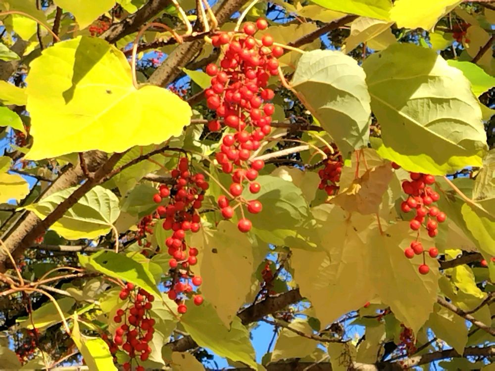赤🔴の「イイギリ(飯桐)」、白⚪️の「ナンキンハゼ」、紅白二つ合わせるとおめでたい感じがしますね👏👏👏