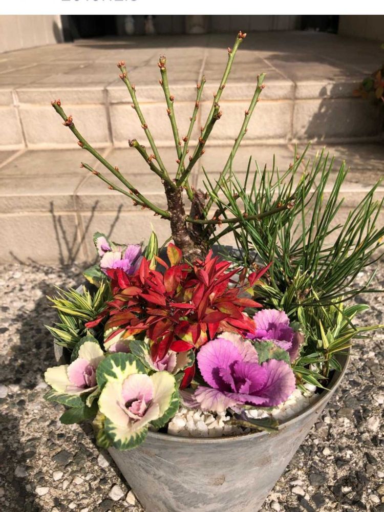 昨年の寄せ植えに南天🔴🔴🌿足して