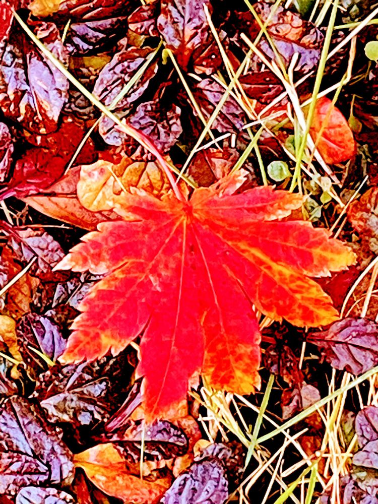 m&oさんの出勤途中で,バス停前のマンションの植栽,楓の落ち葉の投稿画像