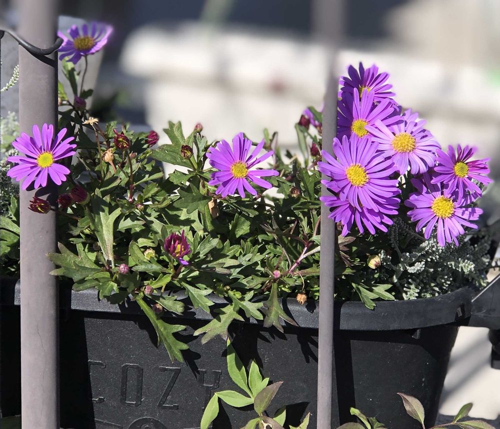 お迎えしたブラキカムがお天道様に首を伸ばして咲いてます💜