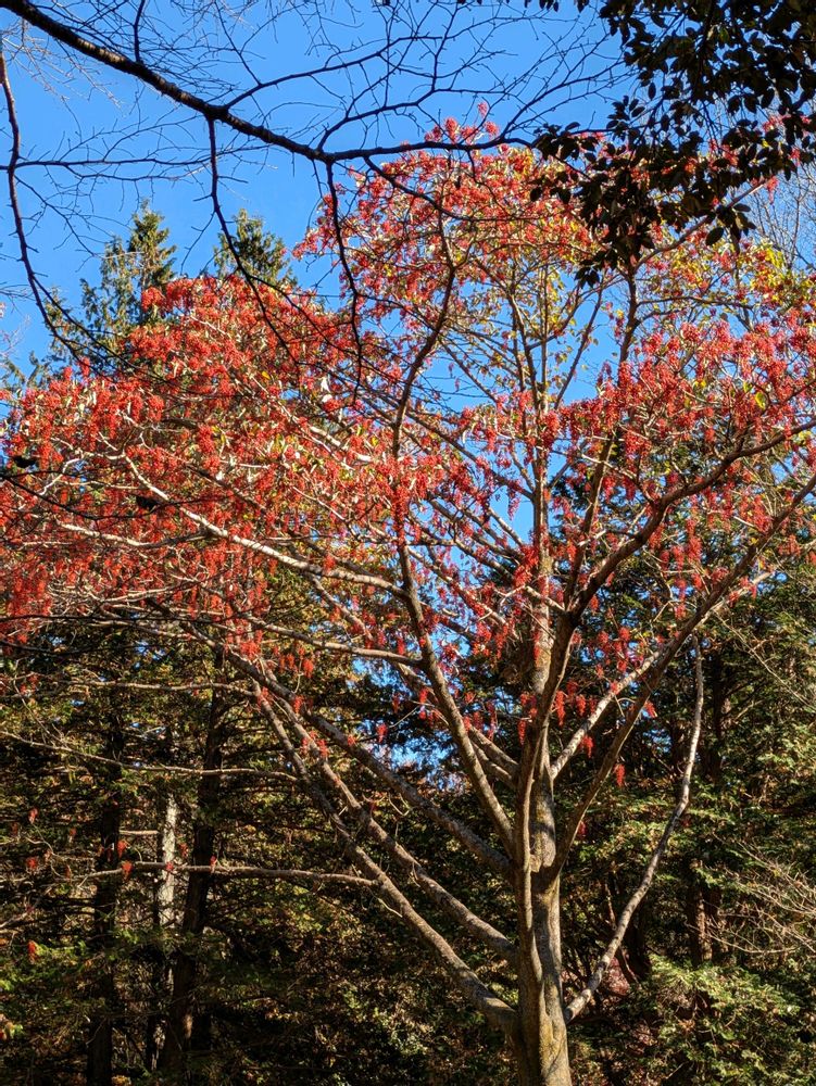 秋に赤い実がブドウの房のように垂れ下がる"飯桐"‥葉っぱはハート形でその昔おにぎりを包んだ事から"飯"の名がついたとか‥落葉高木なのでスマホの📷️では上手く撮れない‥
