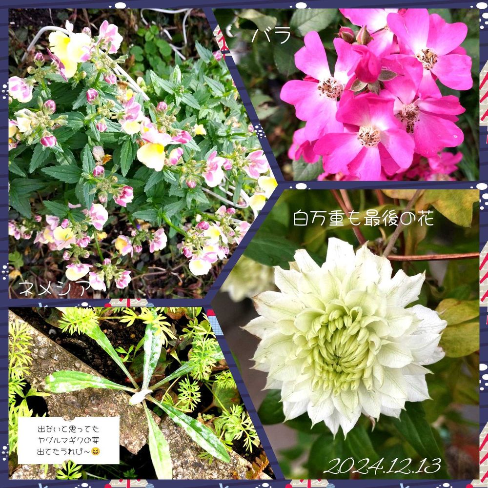 花壇のネメシアや小さいバラがまだ咲いてました。