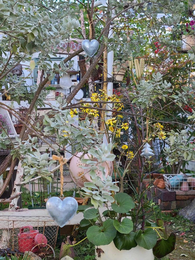 今年はゴールドクレストにクリスマスの飾り付けしなかったので ちょっぴりだけブリキのオーナメントをレウコフィルムさんにぶら下げてみましたꔛᡣ𐭩˒˒