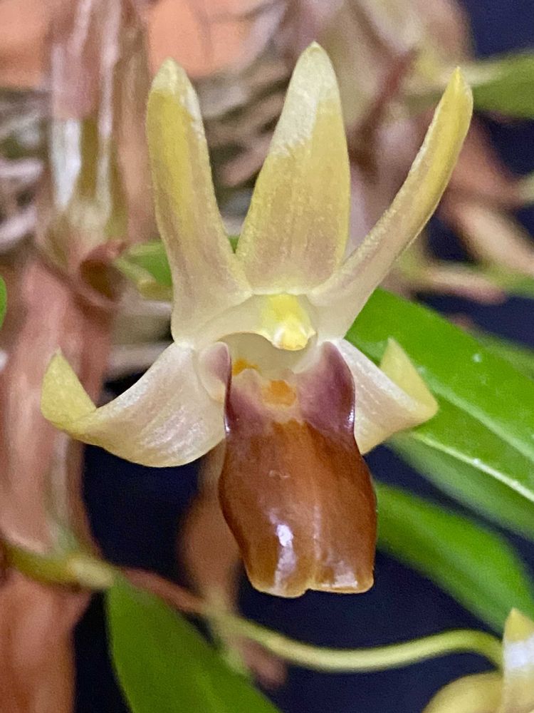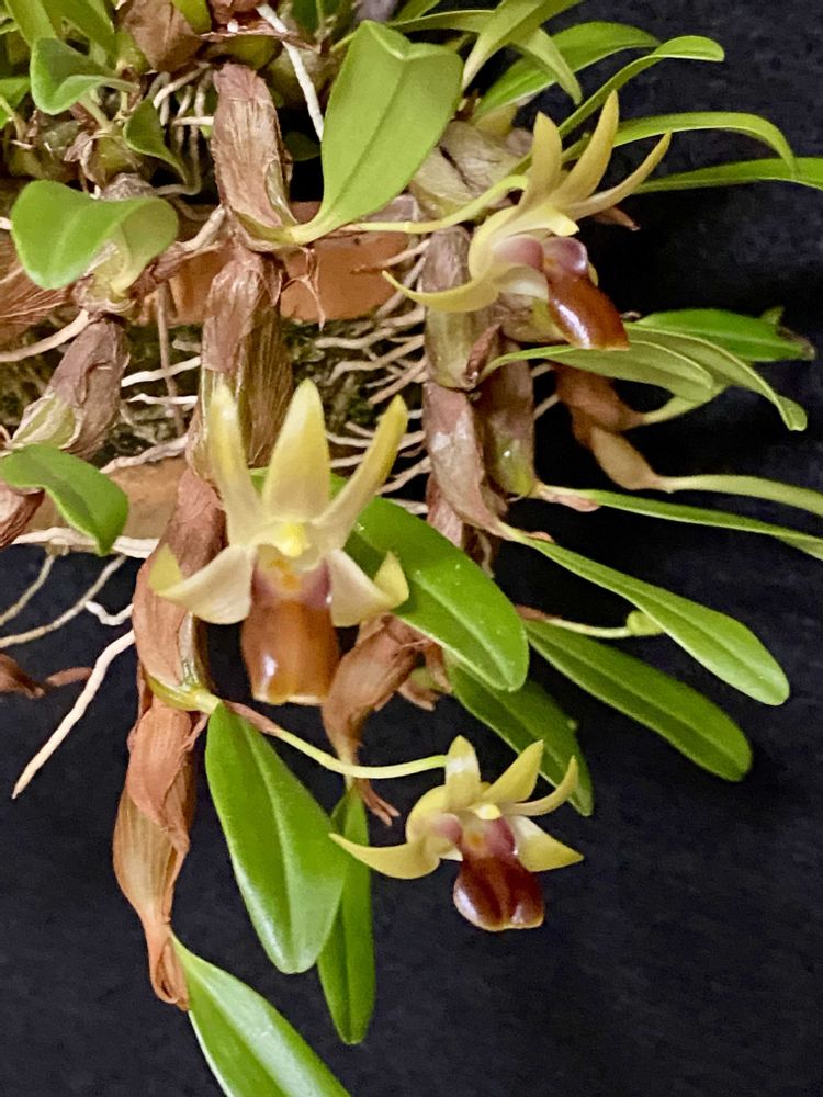 バルブや鉢と同じような色の地味な花ですが、ハンギングで目線を合わせて見ると、可愛い花や蕾です。