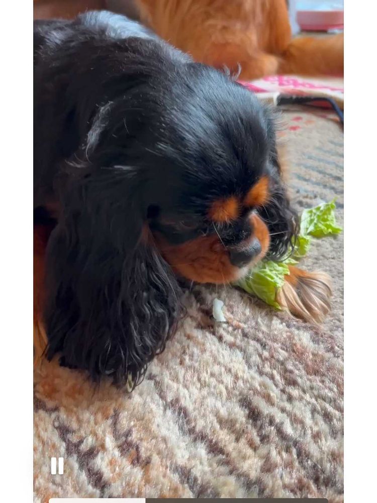 iPhone14撮影,ご近所さんが育てた白菜,愛犬白菜を生で食べていますの投稿画像