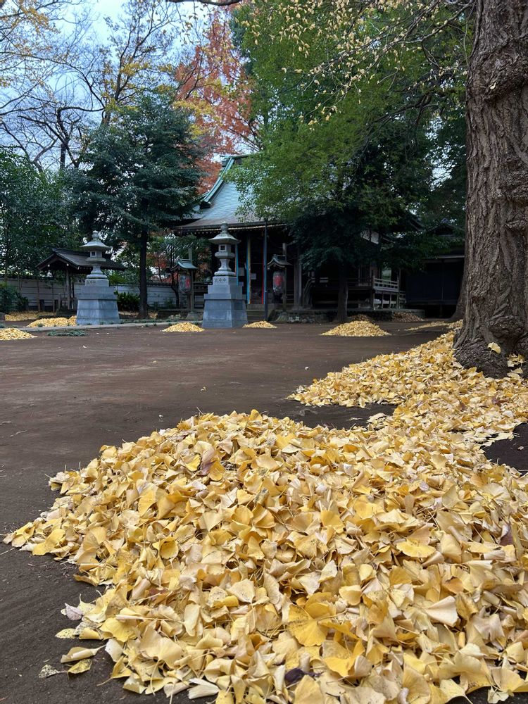 ほぼ落ちた葉を氏子の皆さんが小さな山に🧹まとめて行きます。