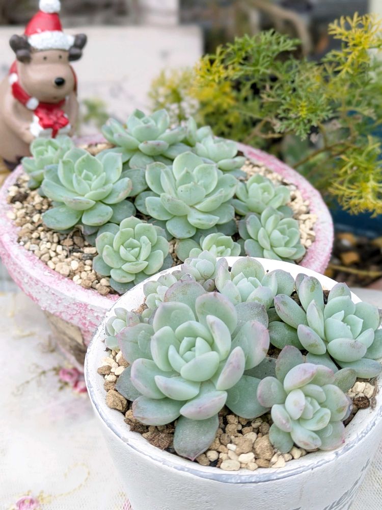 上のピュアラブとアメイジンググレイスの葉挿しちゃん、大きくなってたので、鉢に植えてあげました〜( ˊᵕˋ*)💕