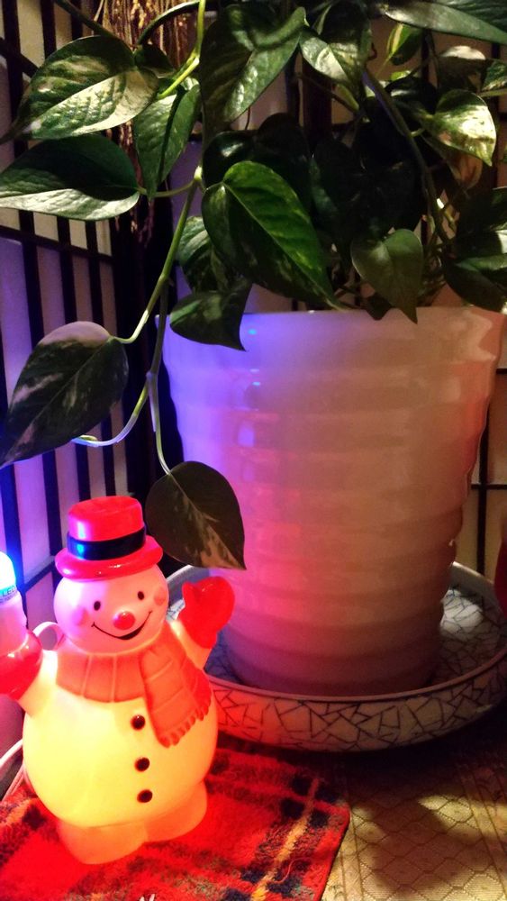 玄関のポトスさんの足元にライト付き☃️雪だるまさんを✨