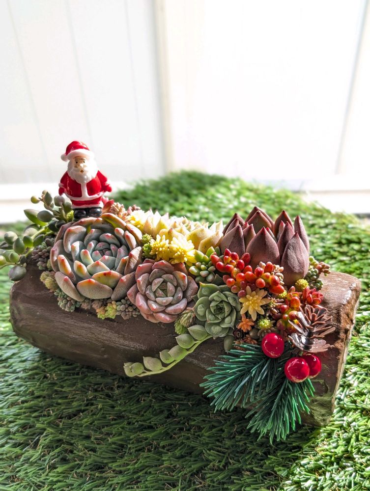 ブッシュドノエル鉢にクリスマス寄せ🎅