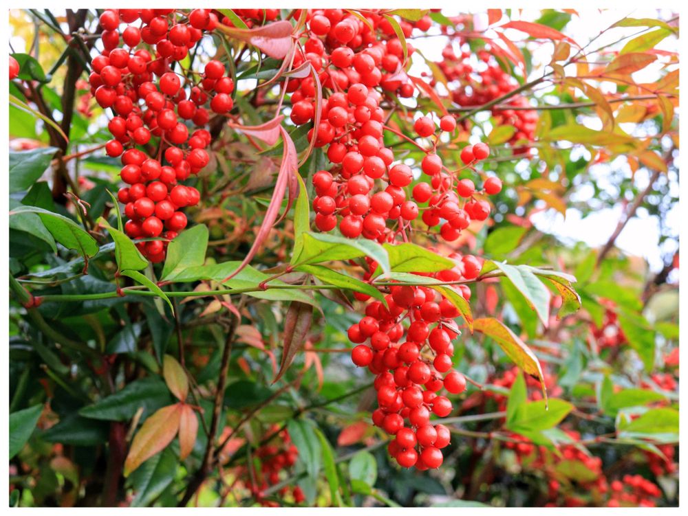 この南天たちは、お寺の駐車場沿いにたわわに実り、見応え抜群でした👍