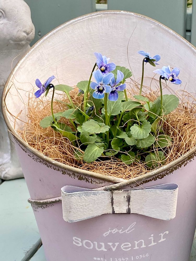 昨年ナーセリーのスタッフさんにときめきビオラが人気なので入荷して欲しいと話したら担当のものに伝えますと言われ、そのせいかどうかは分かりませんが今年初めてときめきが並びました😆