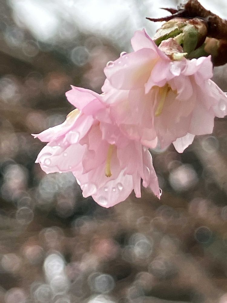 昨日からの雨は今朝雪混じりでしたが 寒さに負けず優しく咲いていました