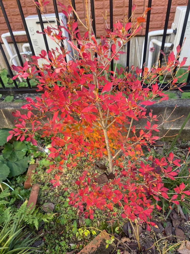 ドウダンツツジが紅葉し、菊もたくさん咲いてます😊