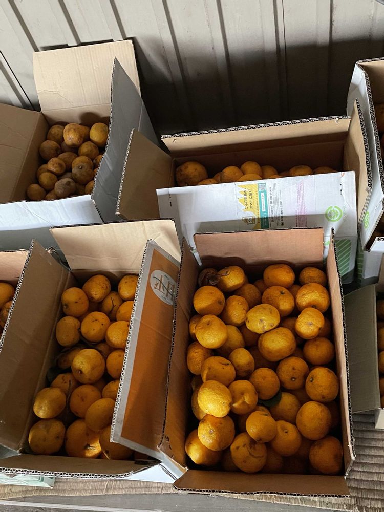 毎年恒例の柚子の収穫🍊段ボール7箱収穫しましたが、まだまだ終わらず…明日も収穫作業🍊トゲが凄くて腕が傷だらけです💧