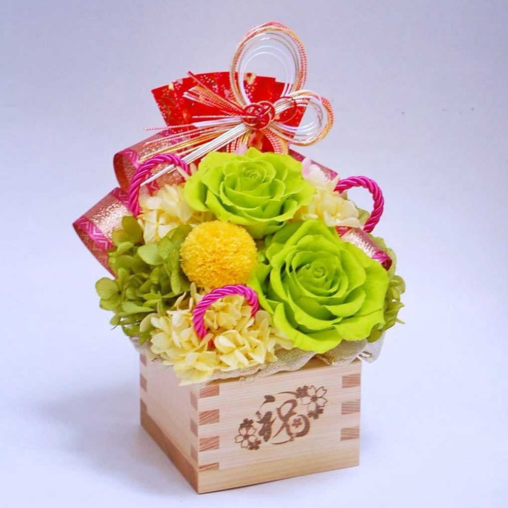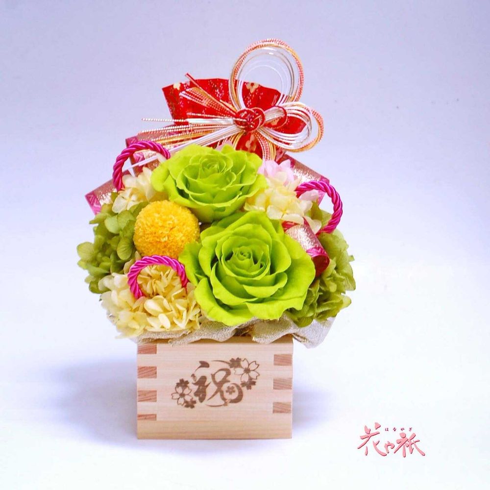 緑色の薔薇(プリザーブドフラワー)が爽やかに咲く枡フラワーです🌸