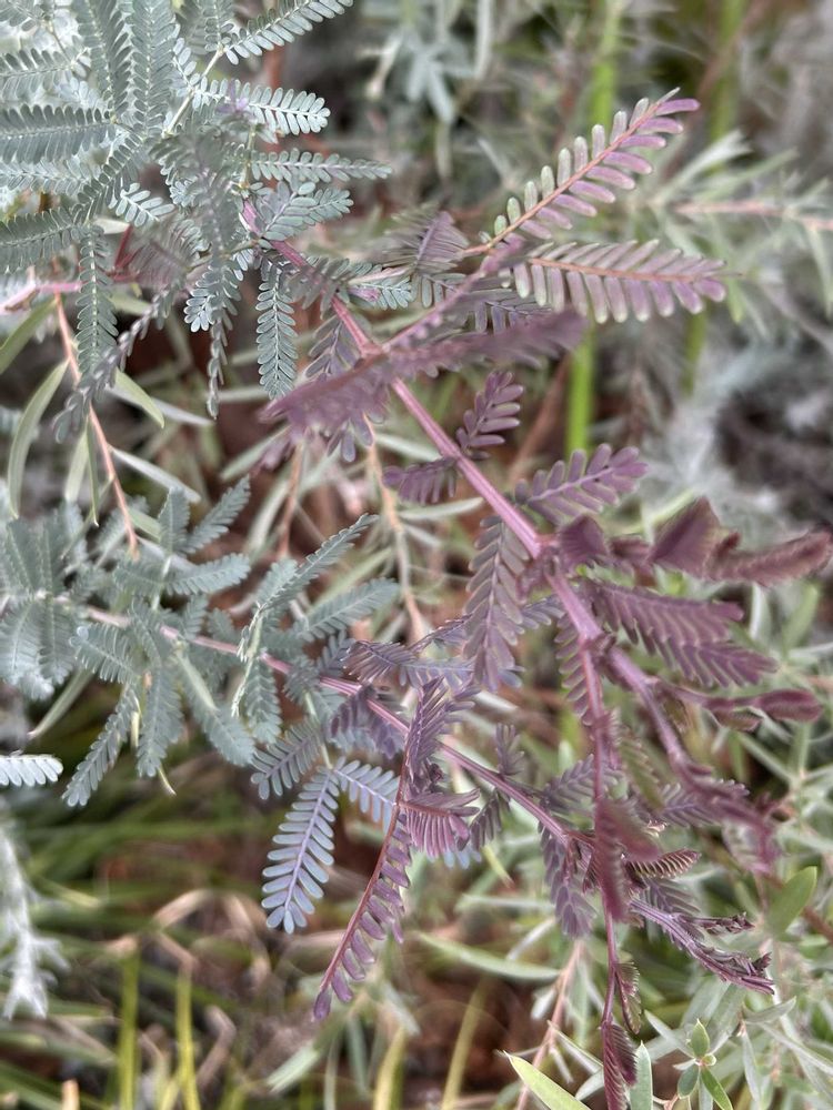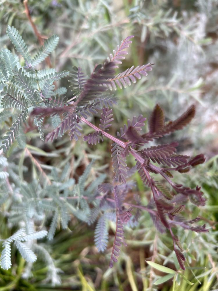 銀色の葉っぱと新芽の紫色がシックな紫銀葉アカシア