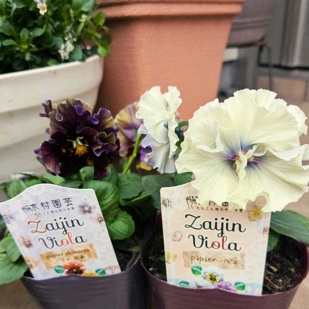 パピエの方は、zaijinビオラにしては珍しい花模様をしているのに加えて、美しいホワイトを楽しめます✨