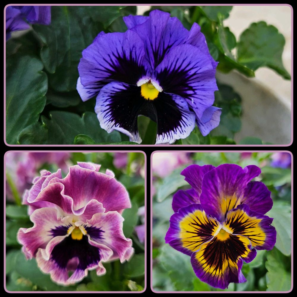 かなり濃い寄せ植えになっております💜💙🩷💛🖤