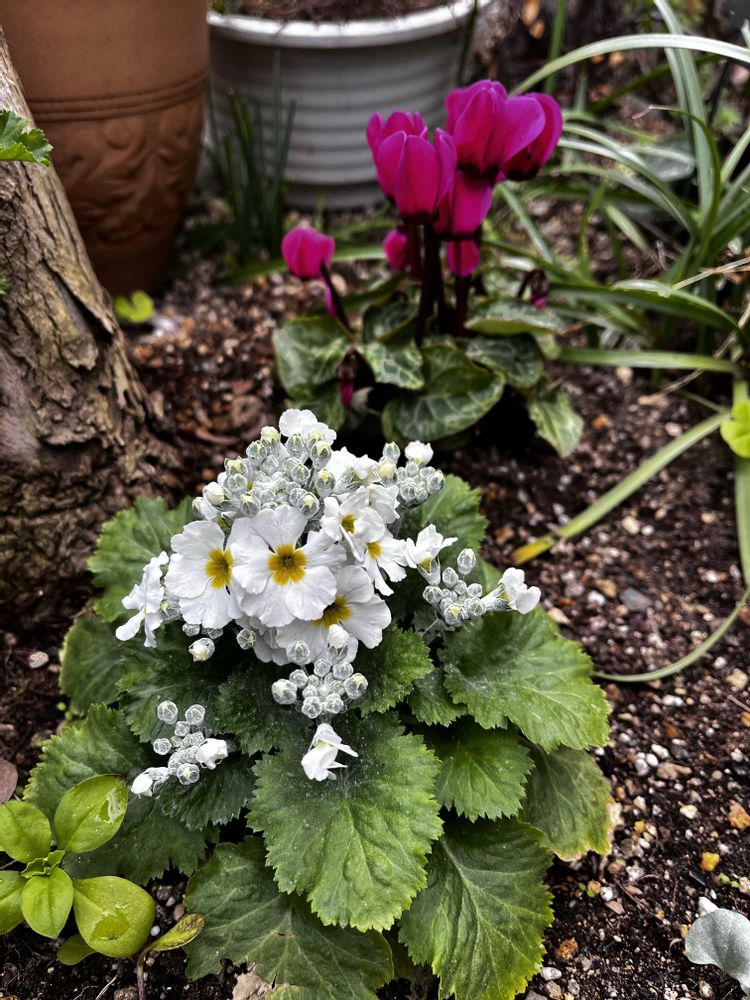3️⃣桜草🌸🤍とガーデンシクラメンの地植え🩷