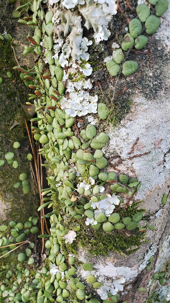 ②湿度が高いのでしょうか、木の幹には豆苔がたくさんついています