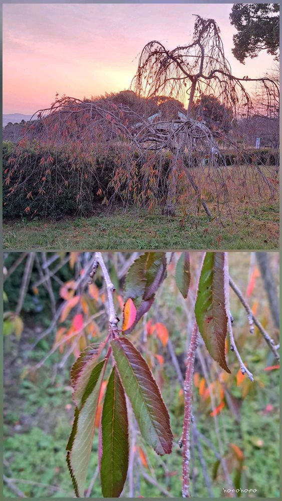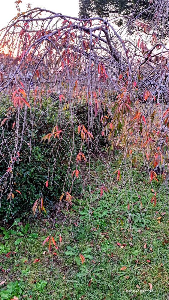 しだれ桜の紅葉は茶色く枯れてるみたいであまり綺麗ではないと聞いていましたが、綺麗で風流でした。
