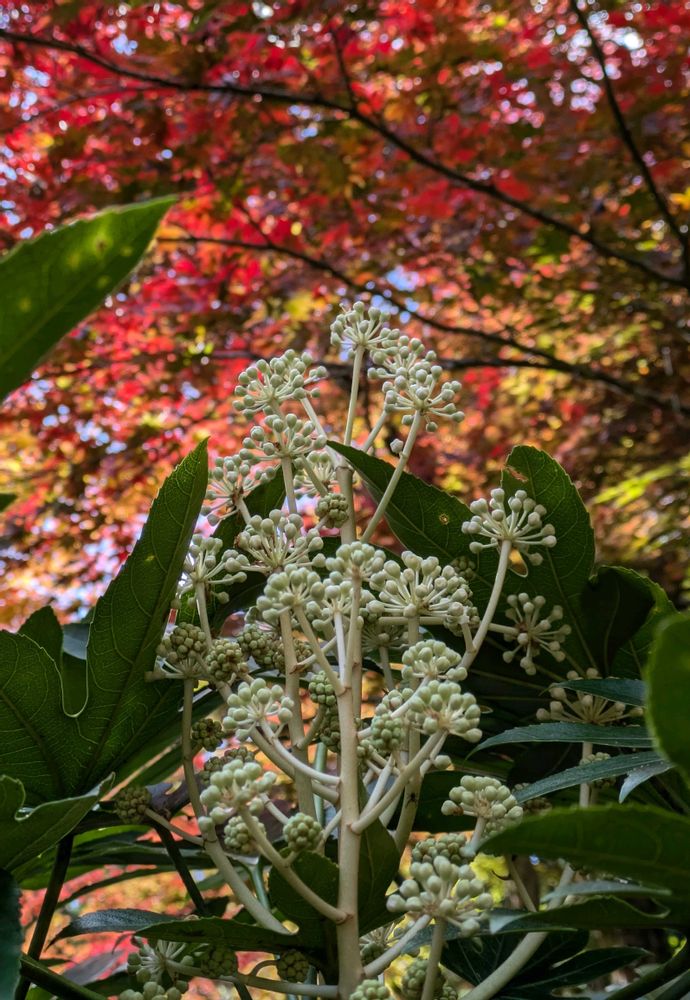 おはようございます😃ヤツデは、綺麗なお花咲かせますね!大好き💕何時もパシャリしてたヤツデ切って無くなっていました😱残念です😢