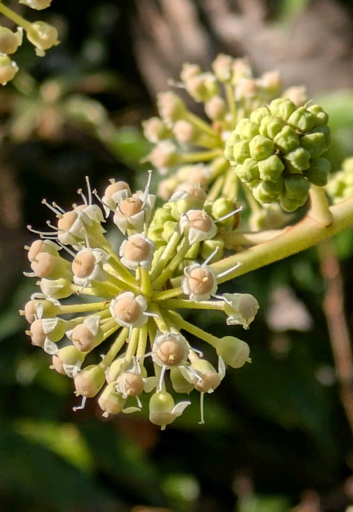 ヤツデの花を見てるつもりが、2枚目はネギ坊主に見えてしまう食い気の私😋