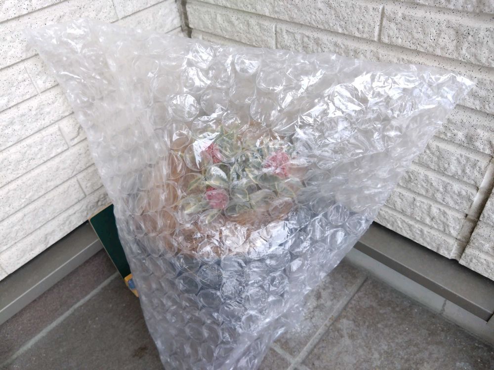 プチプチ袋かけっぱなしに気づいたとき、袋の内側に水滴がついていて、湿って色抜けたような感じに白っぽくなってました💦
