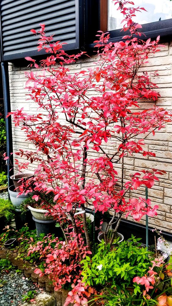 寒くなるのが遅くなったせいか今頃真っ赤かに紅葉しましたブルーベリーの植木です。